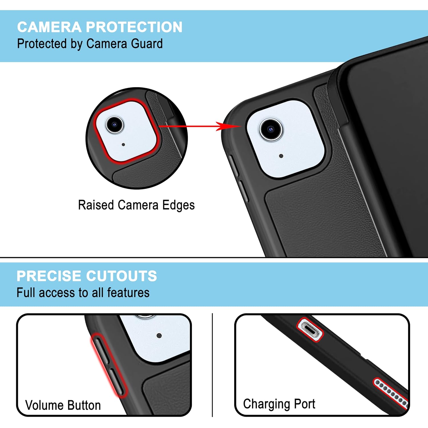- Access to all buttons, ports, and the mobile phone’s camera is preserved.
